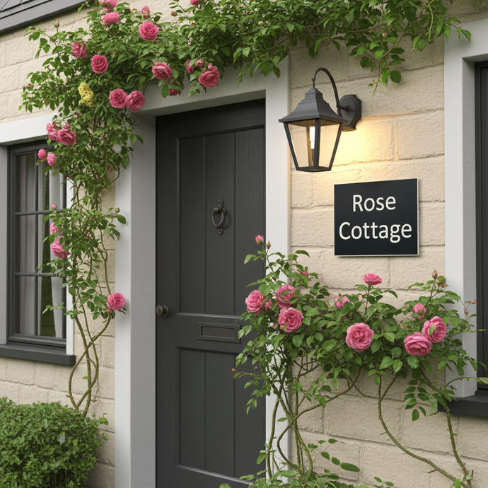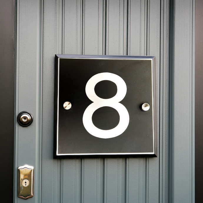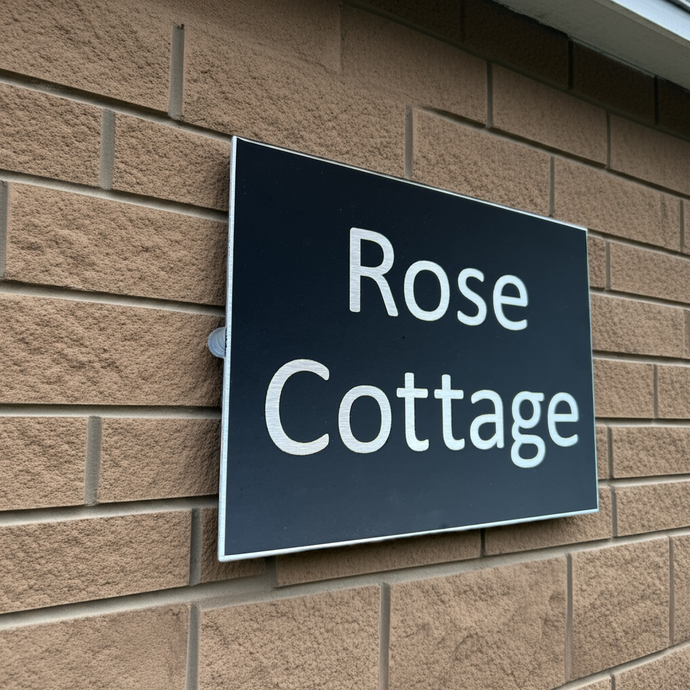 Black Aluminium House Sign with White Lettering in Various Sizes